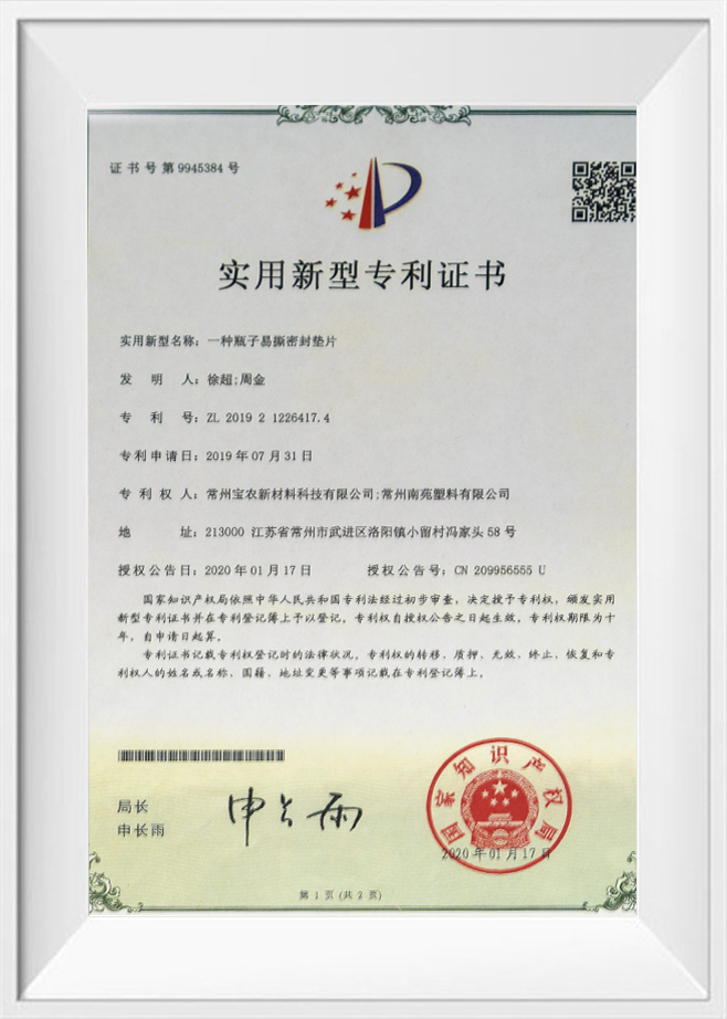 Certyfikat patentowy na wzór użytkowy